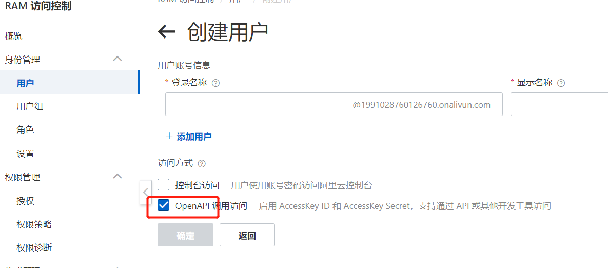 成功护,复制下AccessKey ID 和 AccessKey Secret,页面关闭就无法再次获取了