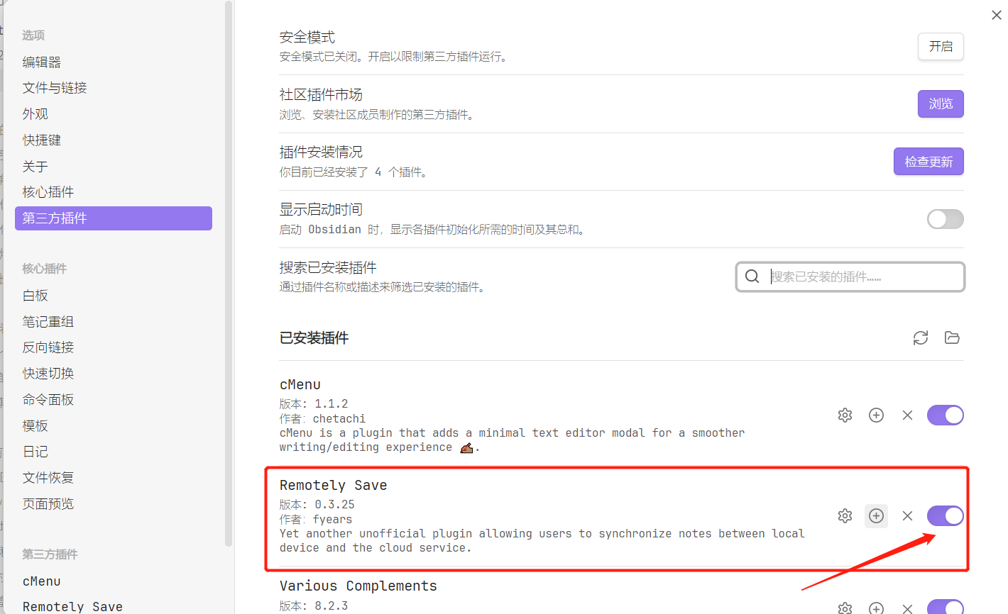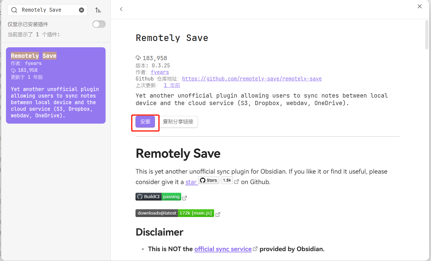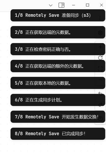 - 回到笔记,点击侧边栏的 Remotely Save 或在命令面板执行 Remotely Save: start sync,即可开始第一次同步