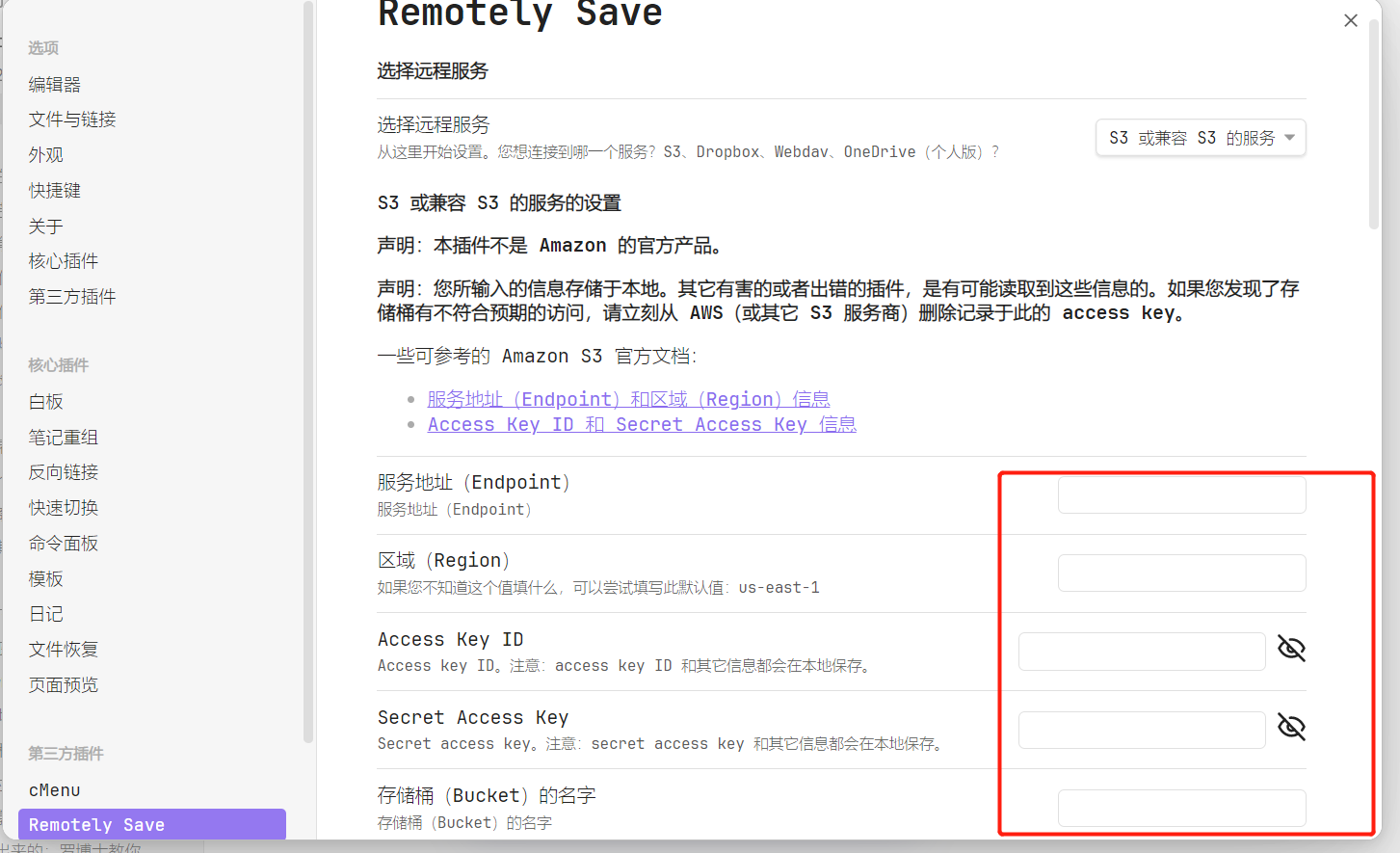 - AccessKeyID 和 SecretAccessKey 对应刚刚让你复制的2个key