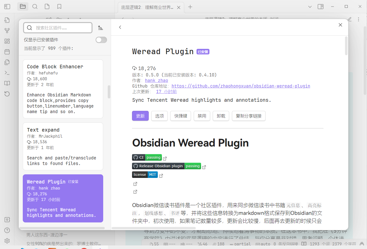 如果你也喜欢用微信读书,一定要试试 obsidian-weread-plugin 这个插件。