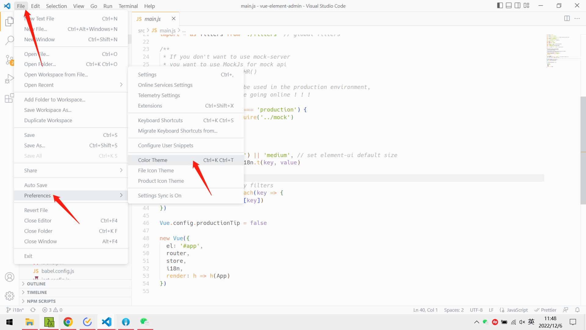 File -> Preferences -> Color Theme