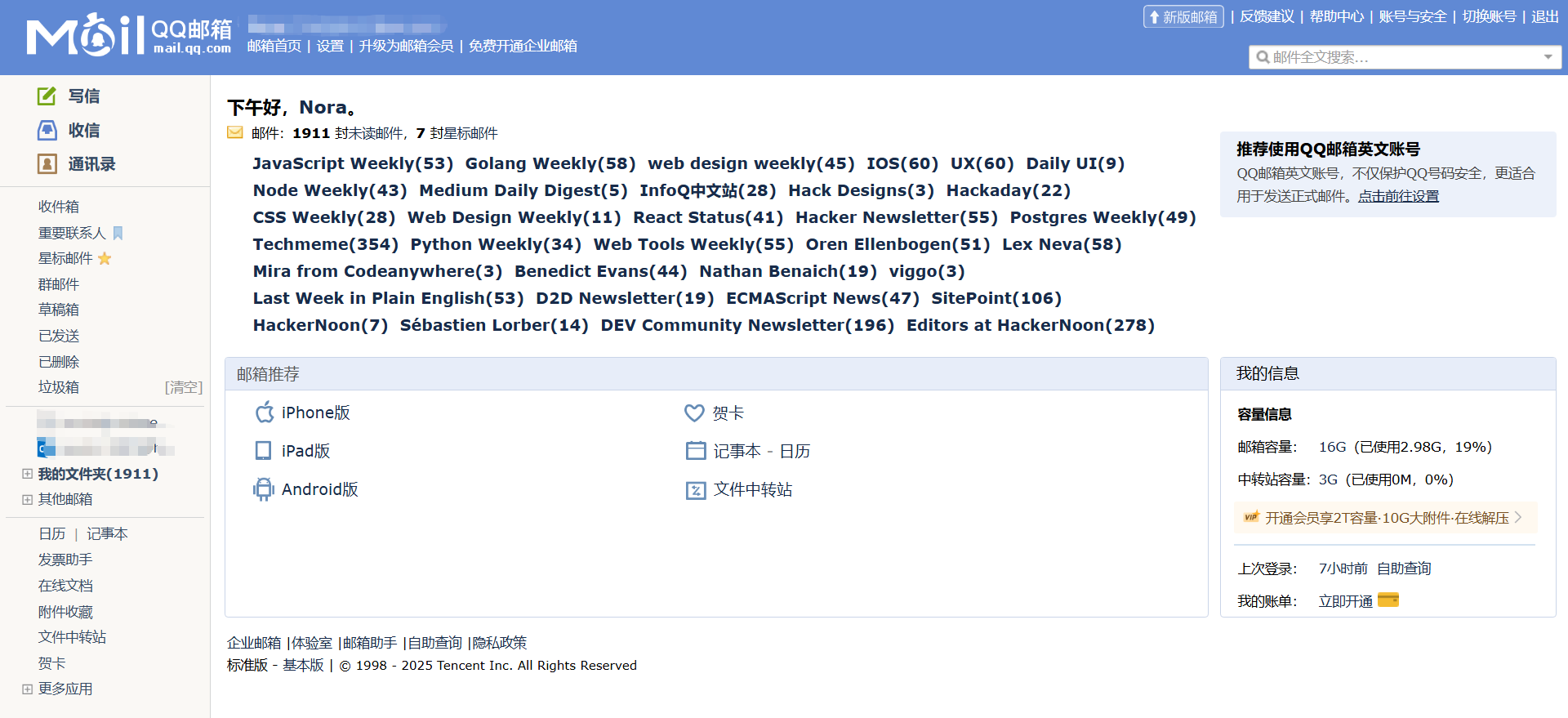 QQ邮箱是最好的邮箱,没有之一。不接受反驳。用来订阅前端技术新闻,储备知识。