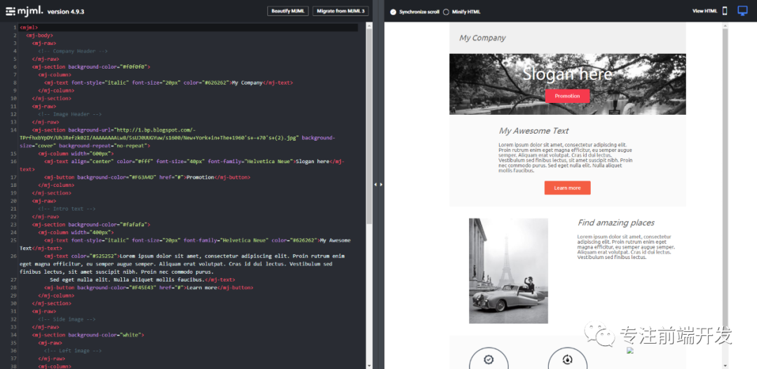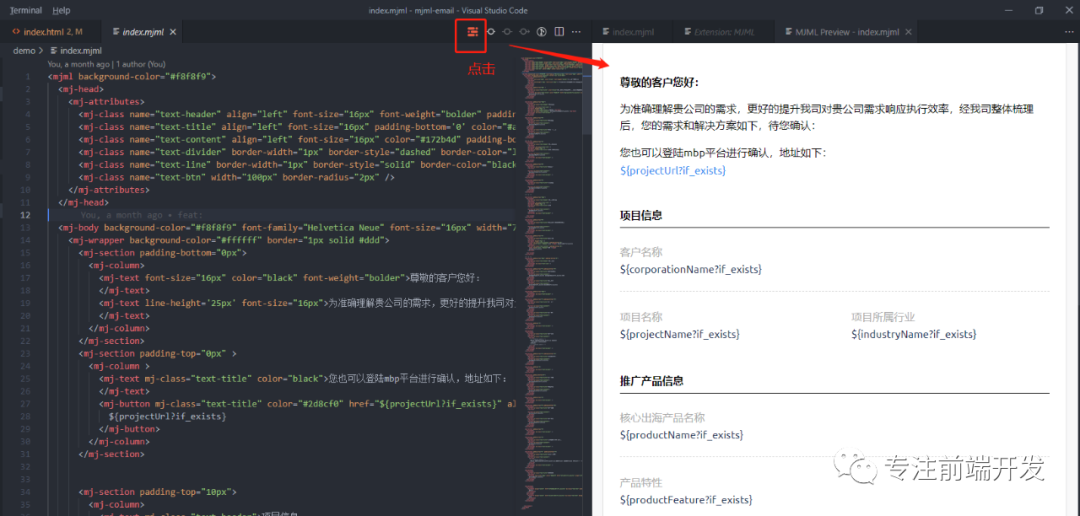 工具: https://marketplace.visualstudio.com/items?itemName=mjmlio.vscode-mjml
