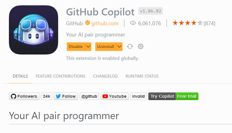 - 安装 Github Copilot,并重新启动你的 Visual Studio Code。