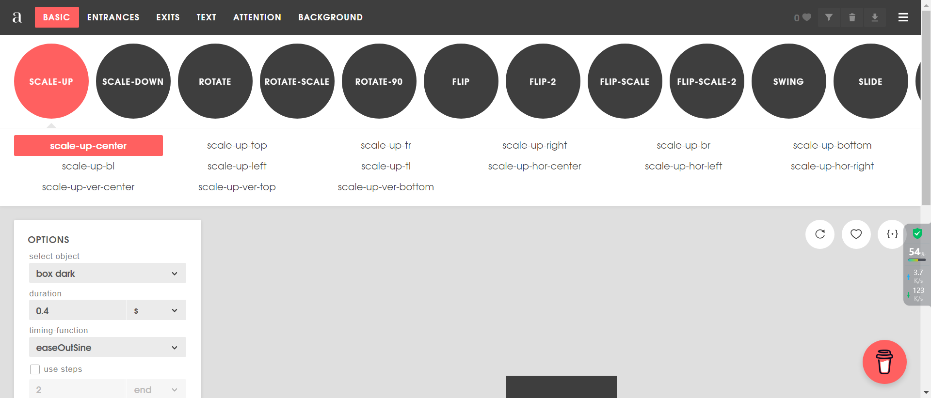 谈到 CSS 网页动画和过渡,Animista 是一个非常有用的工具,它给你一个完整的 CSS 动画库,你可以在你的项目中使用。