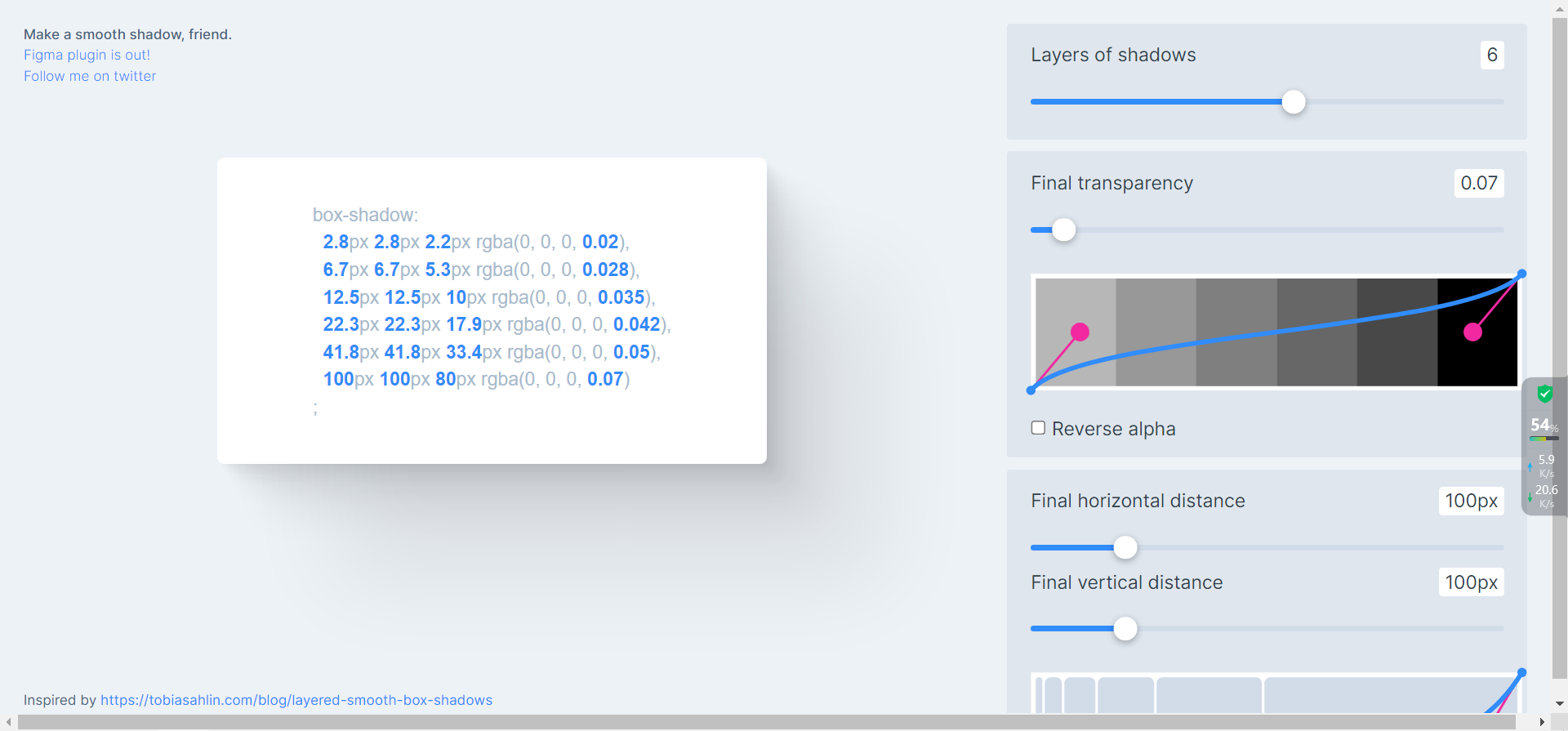 Shadow Brum 是另一个很棒的 CSS 生成器工具,它允许你生成基于 CSS 的平滑阴影。