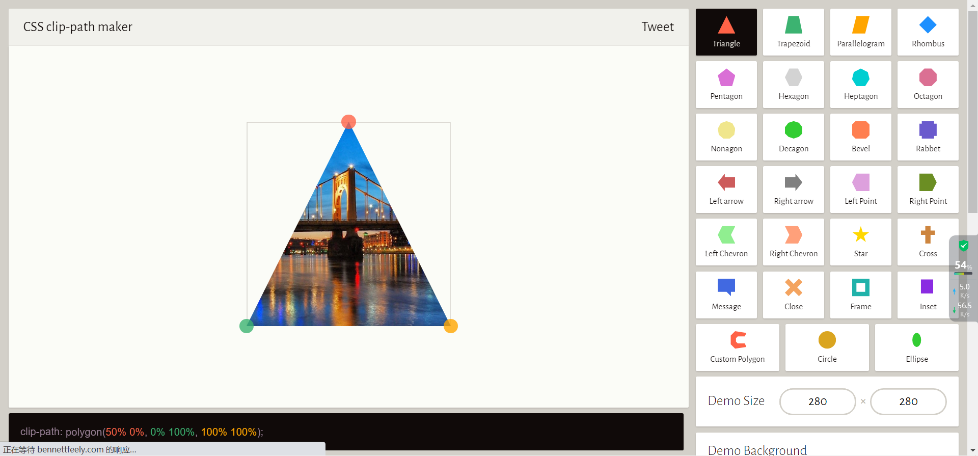 这个工具基于 CSS 属性 clip-path,它可以创建复杂的形状(多边形、圆形、椭圆等)。