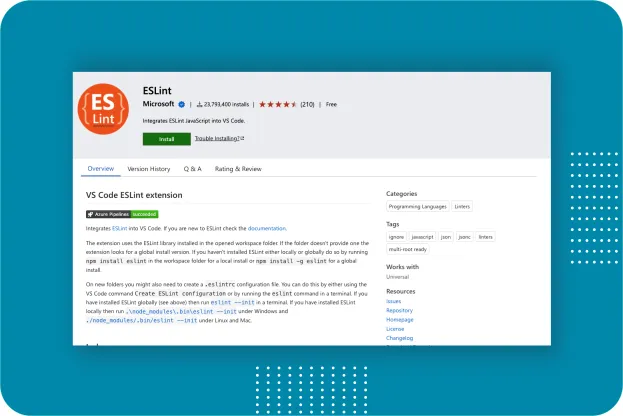https://marketplace.visualstudio.com/items?itemName=dbaeumer.vscode-eslint