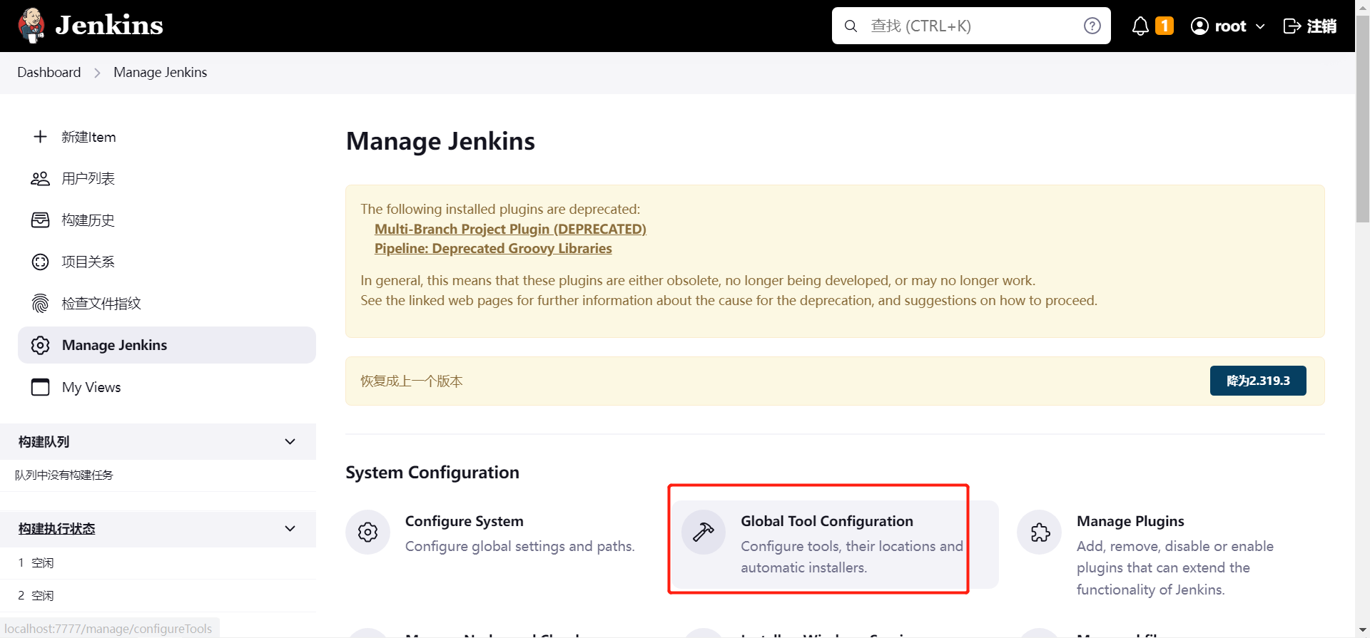 λ java -jar jenkins.war --httpPort=7777 --enable-future-java // 端口号7777,默认8080浏览器打开 http://localhost:7777/