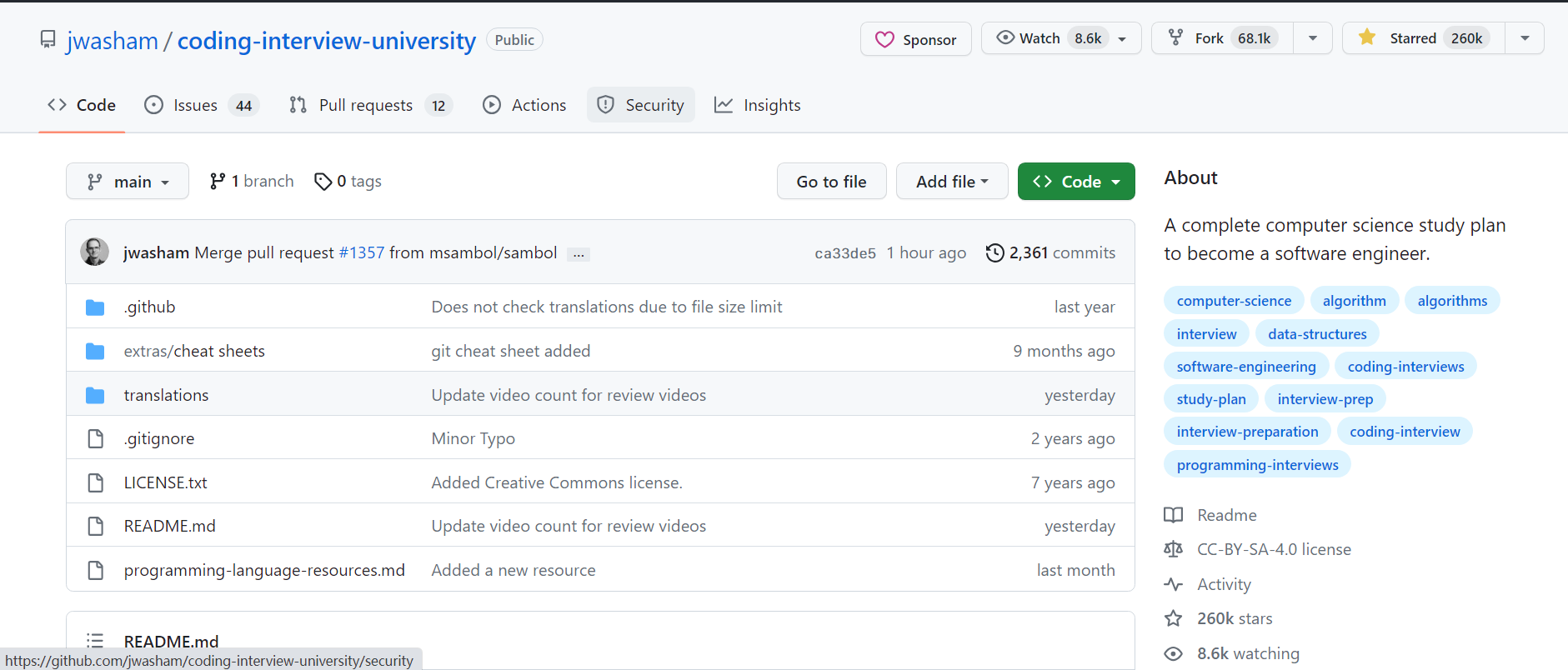 地址:[https://github.com/jwasham/coding-interview-university](https://github.com/jwasham/coding-interview-university